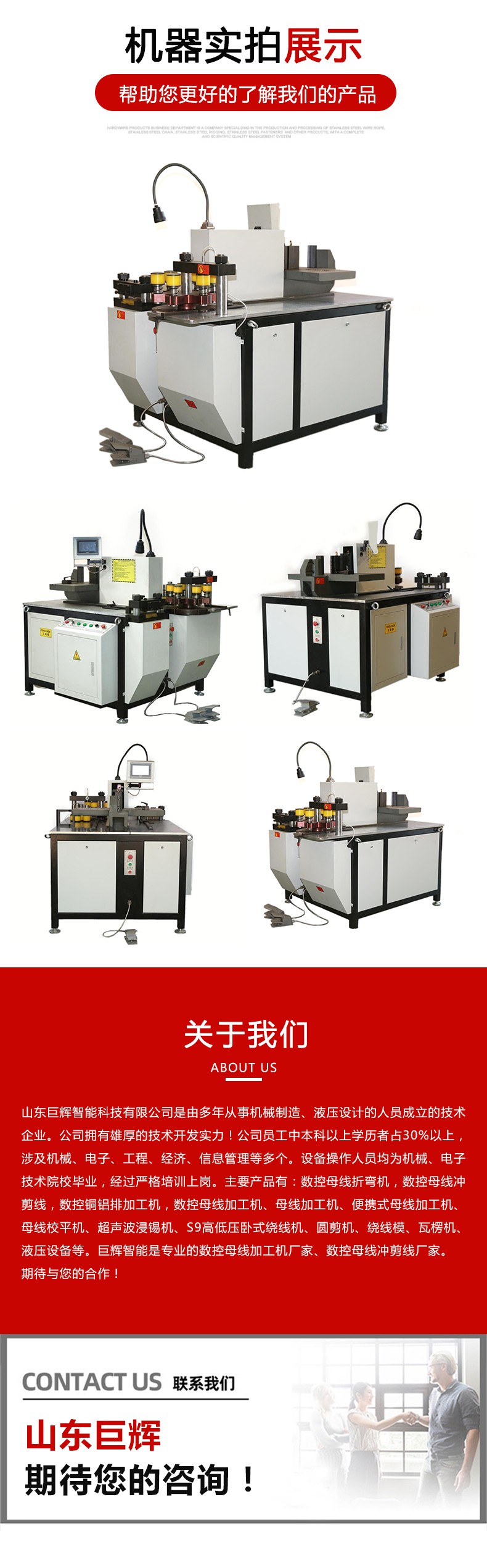 說句實在話,母線加工機是車間的“生產力擔當”,不是“省錢的工具”。買臺靠譜的新機,加工效率提上去,返工率降下來,訂單按時交付,這才是真的省錢;而二手設備,看似省了眼前的錢,實則埋了一堆雷,維修費、返工費、誤工損失加起來,只會讓你花更多冤枉錢。咱山東巨輝的廠區天天敞開大門,不管你是想來看設備生產過程,還是帶自己的銅鋁排現場試機,都歡迎隨時來,好用再訂,不好用轉身就走,絕不粘人。